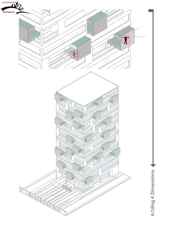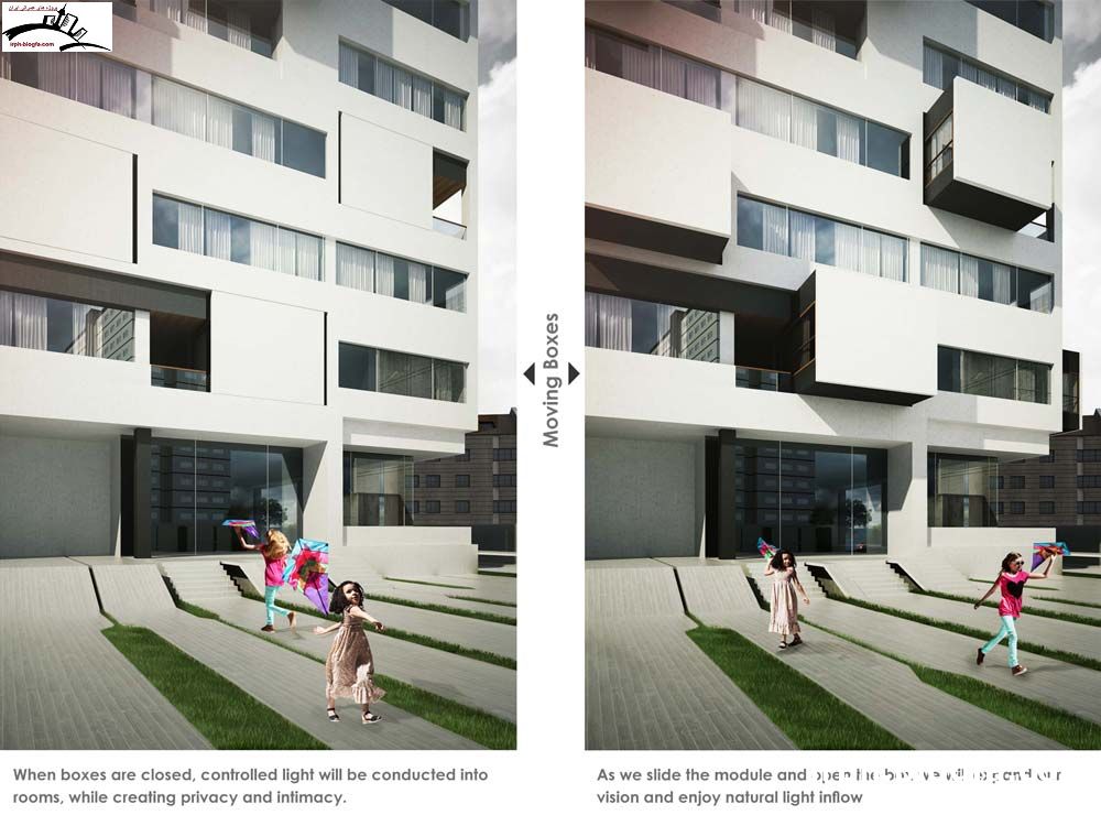 در خلق برج باغ مسکونی واقع در زعفرانیه، ابتدا کالبد حجمی ساختمان مکعبی سیاه در نظر گرفته شد که پوسته سفید چهار وجهی آن را در بر گرفته است. در گام دوم، حجم برای رسیدن به زیربنای لازم بر اساس نیازهای عملکردی، پوسته خود را بر اساس الگویی مدولار شکافته و از حدود خود فراتر می رود. حاصل این برش های مدولار شامل یک واحد پنجره و اتاقی که مانند کشو از درون بنا بیرون زده، نمایی غیر مدولار است که در کل کالبد مجموعه را پیوسته به نمایش گذاشته و بر خلوص حجمی آن تاکید می کند.